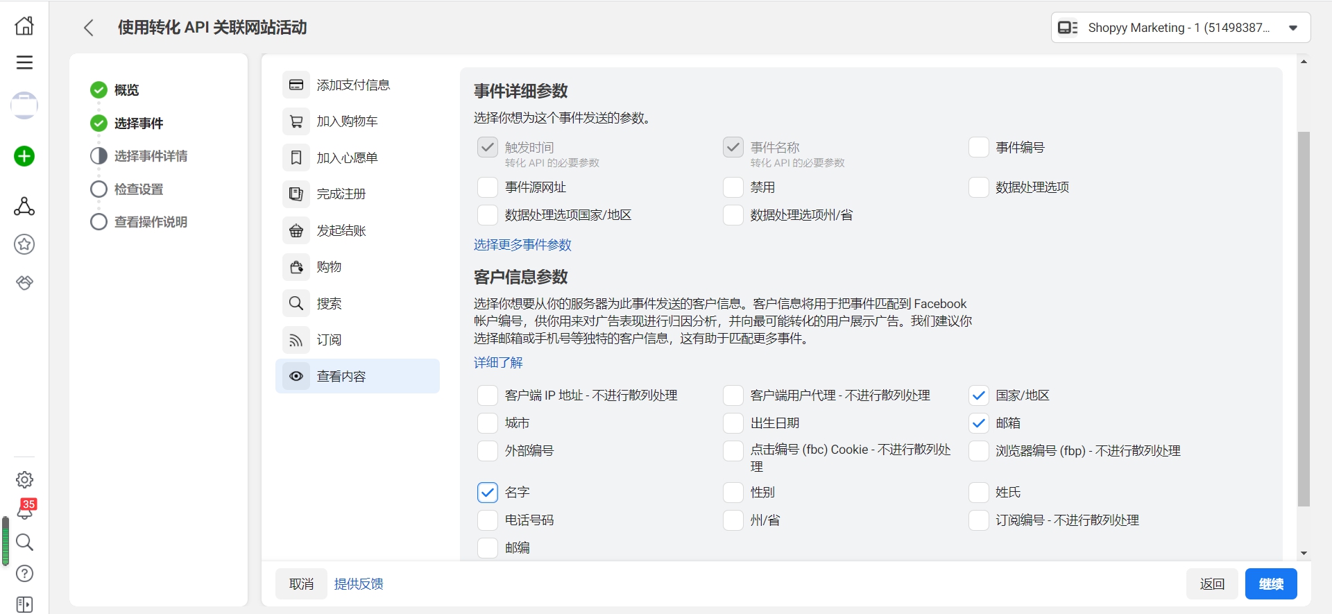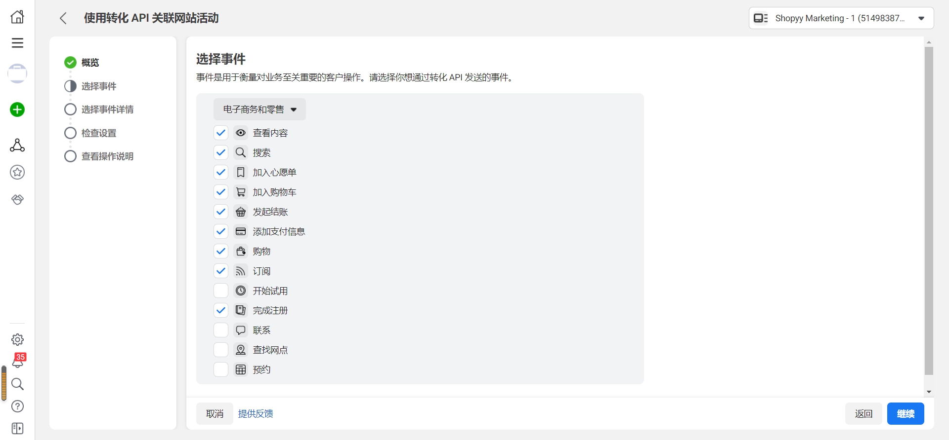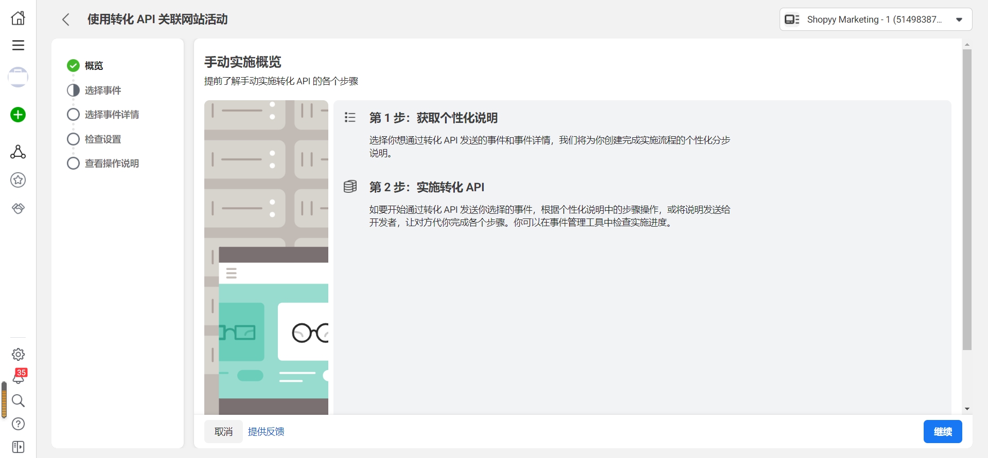 2.在对应的广告账户下 切换到事件管理工具创建像素