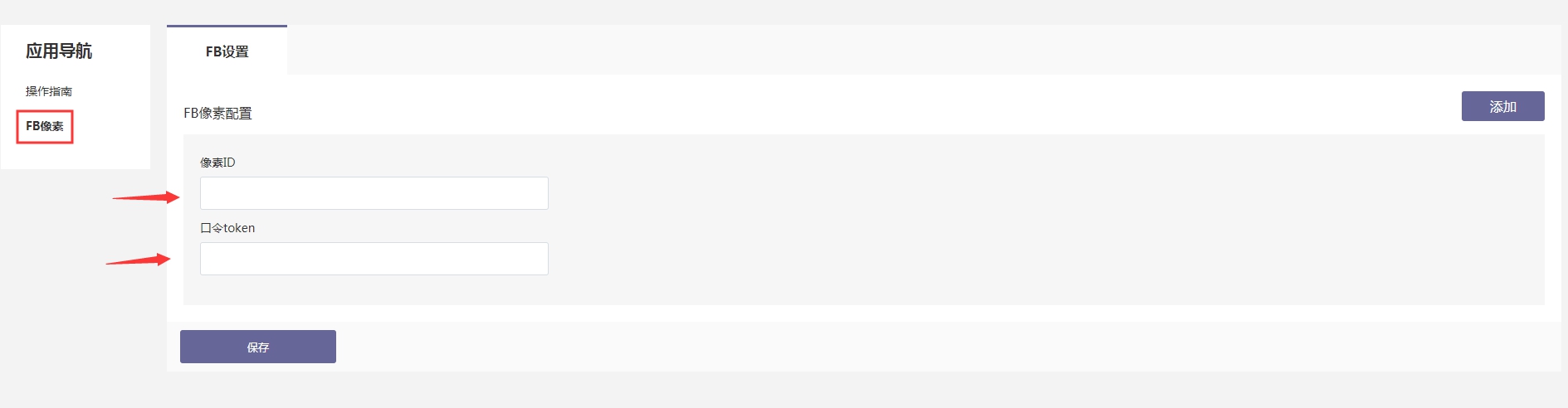 2.将FB像素id和FB事件管理工具中生成的口令复制进来。右上角点“添加”,可以添加多个像素id
