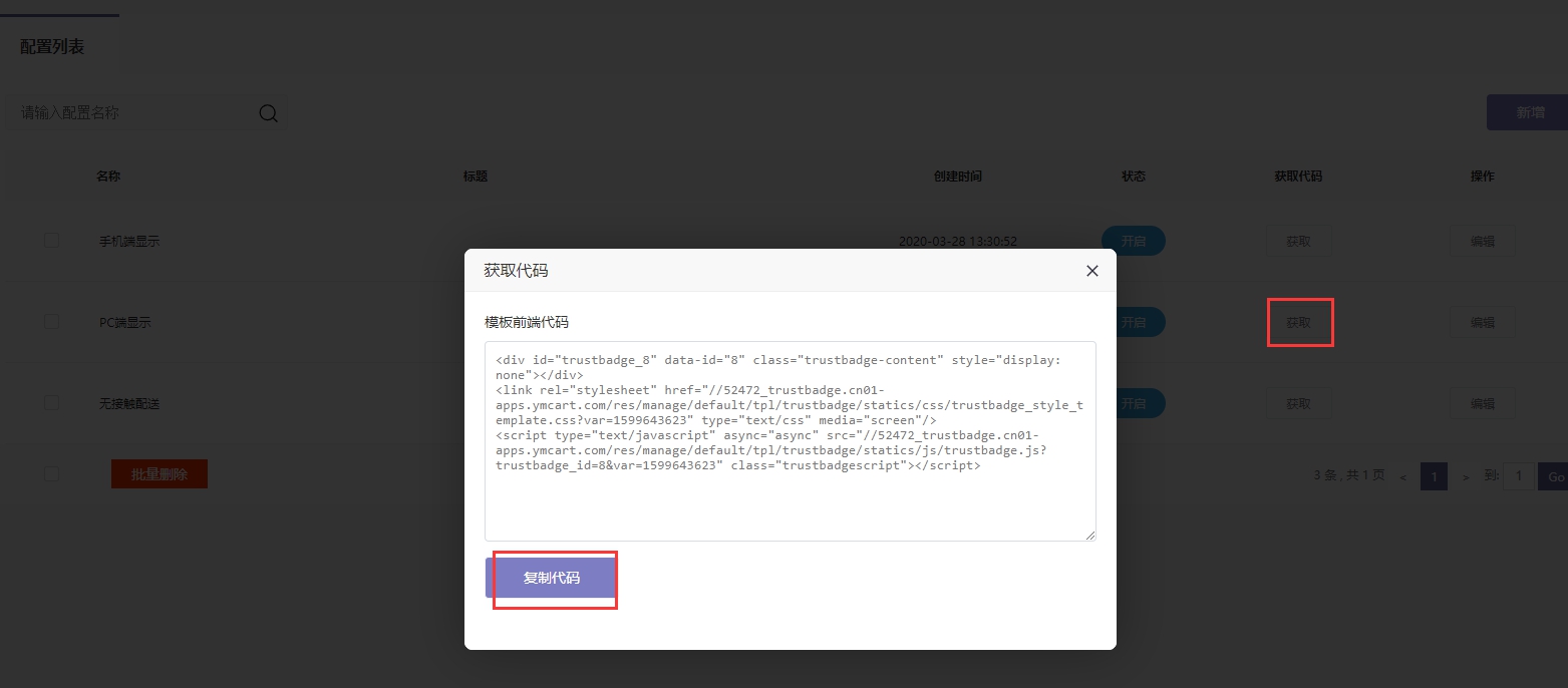 2.获取代码,复制代码嵌入到编辑器里,例如详细页右侧描述,详细页等地方