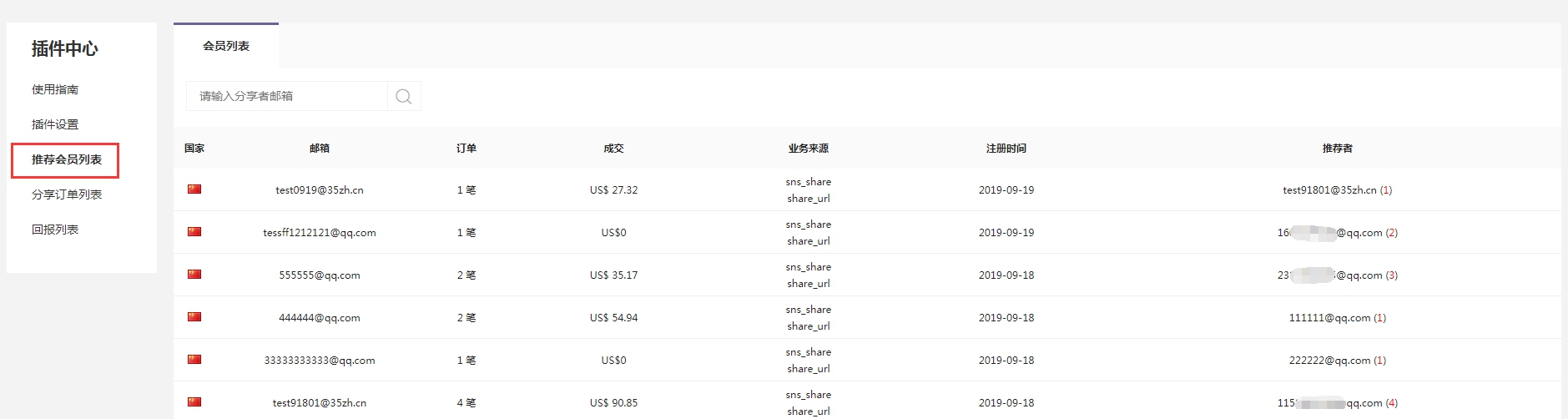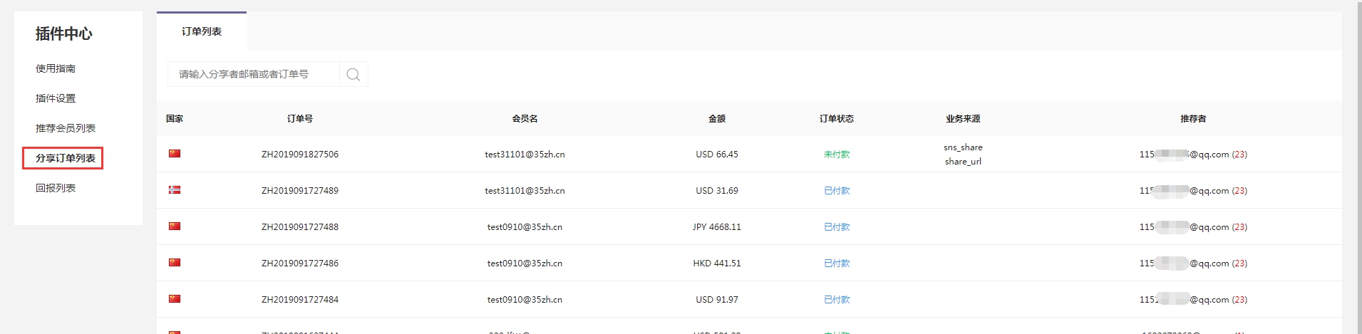 5.分享订单列表,显示所有分享订单及分享者账号,可以清楚的查看到哪些订单是哪些会员分享产生的