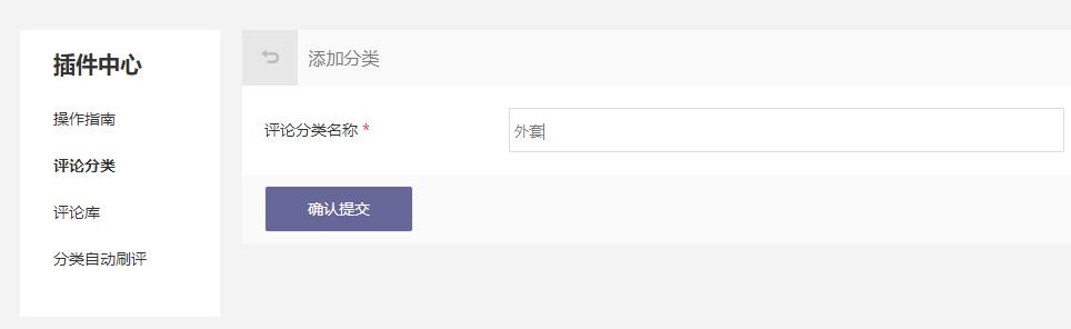 2.评论分类模块,点击右上角‘添加分类’名称,例如:外套。