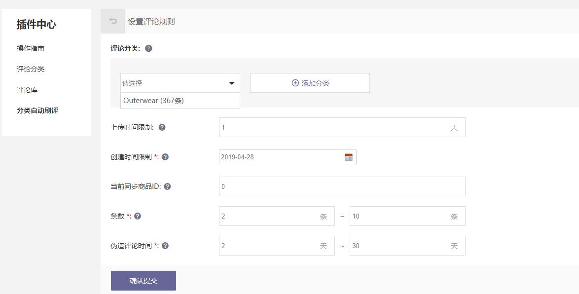 4.分类自动刷屏模块,可以针对具体分类下的所有商品自动同步评论。