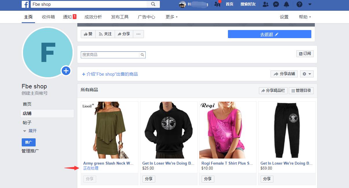 7.查看facebook店铺商品展示效果,商品会逐渐加载出来并显示对应的审核状态