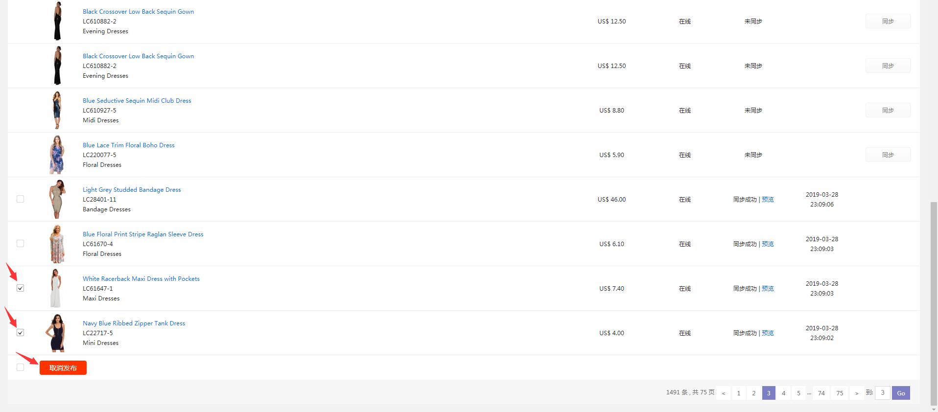 8.已同步商品如果要从facebook店铺中删除,在插件商品列表中勾选商品,点击左下角“取消发布”即可
