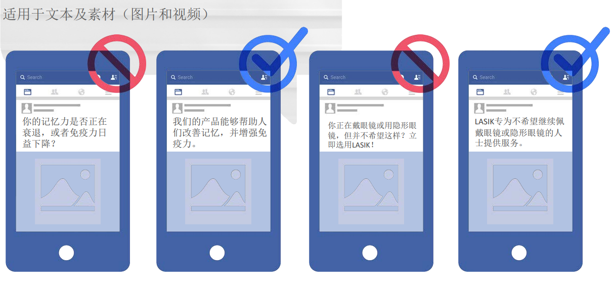 - 在推广符合要求的成人健康及保健产品时(例如:减重、医疗手术、维他命及营养补充品),广告定位的用户必须为年满18岁的人士。