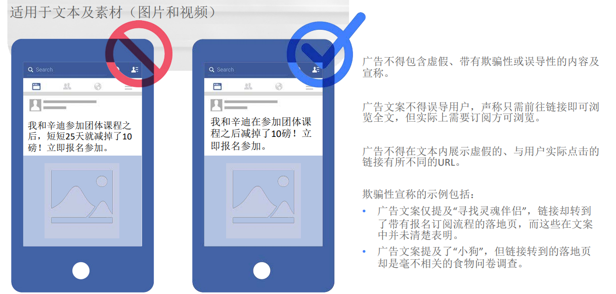- 不可使用带有误导性或欺骗性的内容及宣称