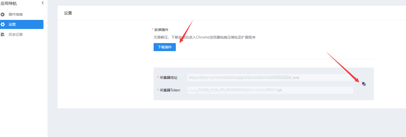 应用中心,我的应用,设置,点击下载插件顺便复制下api链接