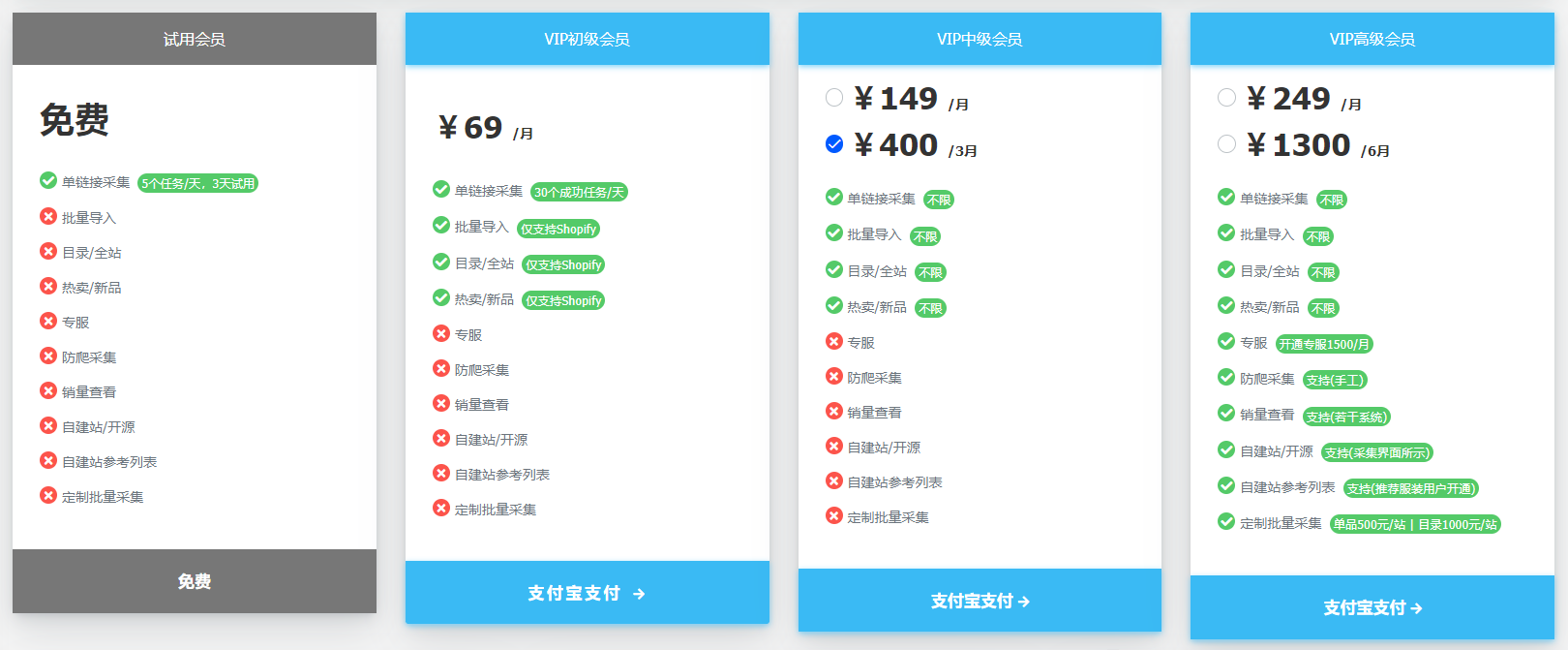 采集有免费版和收费版本可以选择,支持免费试用满意再开通,允许会员在同一公网IP下多用户登录,也就是一个公司同ip,只需要购买一个就可以全公司使用。