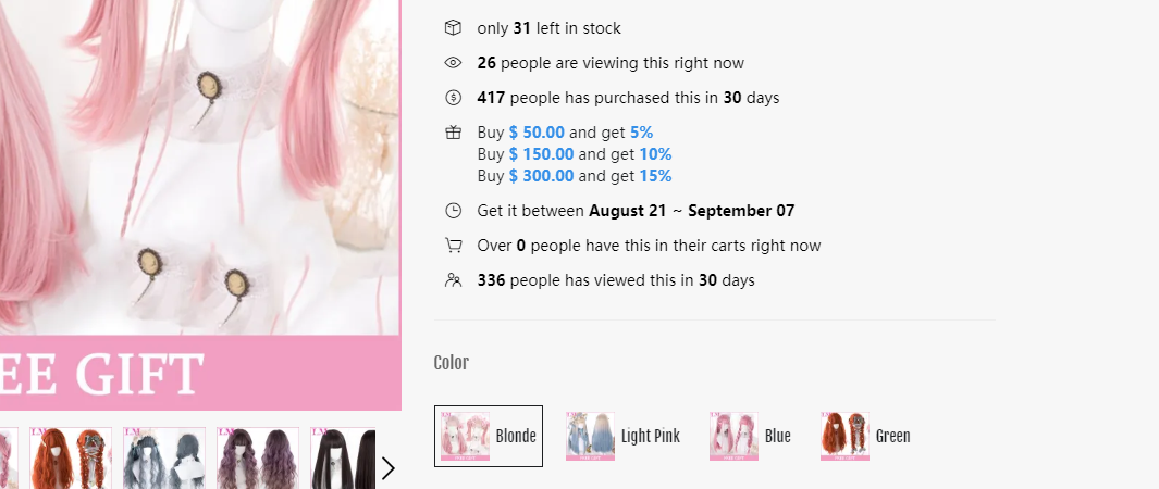 在商品详细页添加预设或自定义的图标,利用稀缺效应,营造商品促销场景;通过视觉、情感、认证等方面体现产品价值,让客户更快的决策(例如库存紧张、促销时间、最近购买、查看人数等)