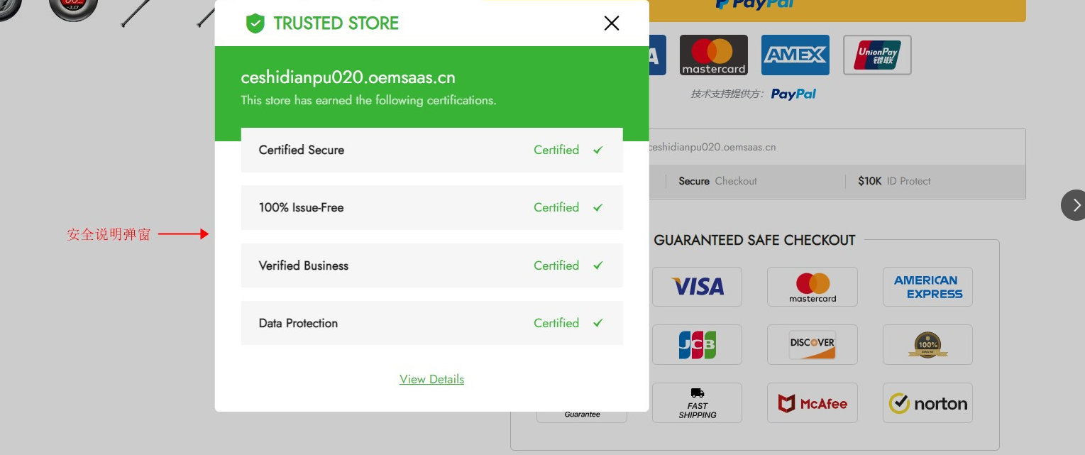在店铺的特定页面添加一些信任徽章,可以赢得客户信任,激励他们继续留在您的店里并安心地购买产品,从而提升下单转化率和店铺销售额;若店铺需要搭建专业化、场景化的网站安全提醒,推荐您使用网站安全(增强)并按照实际需求配置。