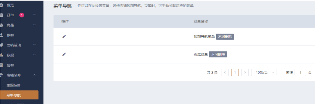 头部菜单和底部菜单设置在后台的,店铺装修——菜单导航设置,设置好后在装修页面调用。