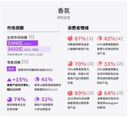 2021香水全球市场规模达到$306亿,年复合增长率5%;