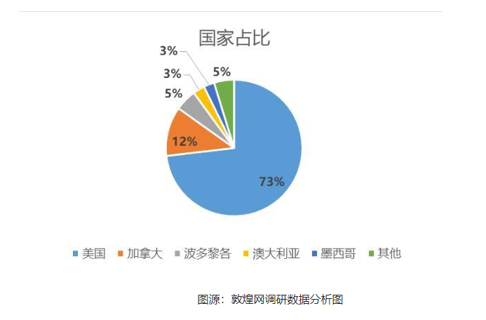 杯具一类产品目前热销国家主要集中在美国、加拿大和波多黎各,占比分别为73%、12%和5%。