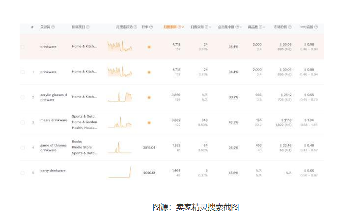 卖家精灵热搜词:Drinkware、Acrylic glasses drinkware、Maars drinkware、Game of thrones drinkware、Party drinkware